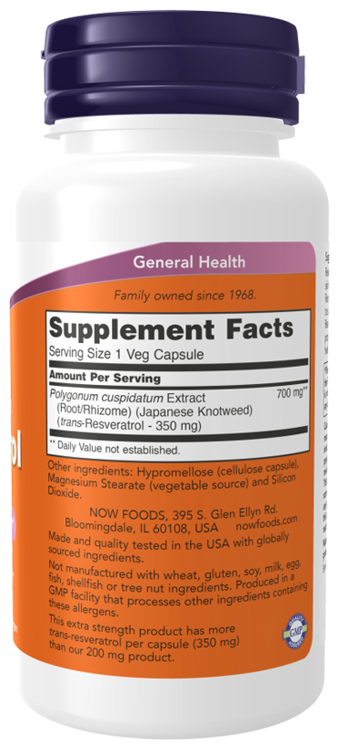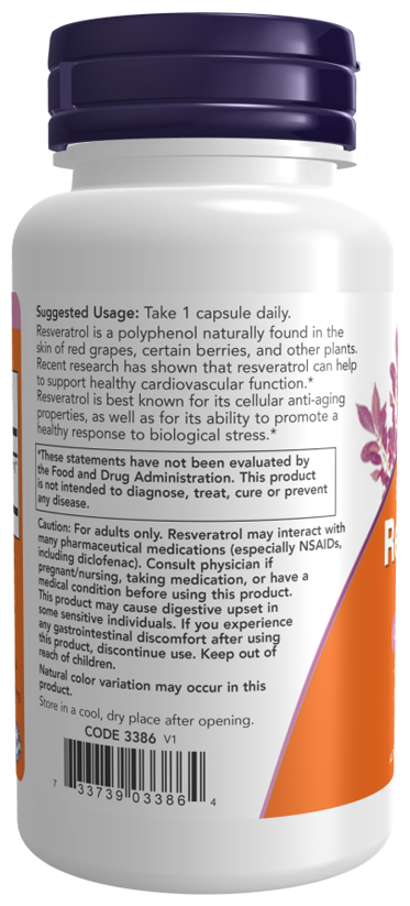 NOW Natural Resveratrol, Натуральный Ресвератрол, 60 капсул