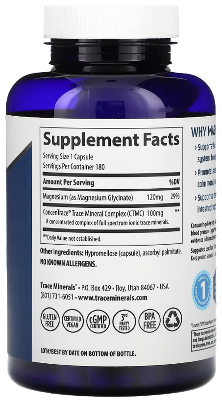 Trace Minerals Magnesium Glycinate 120 mg, 180 капсул