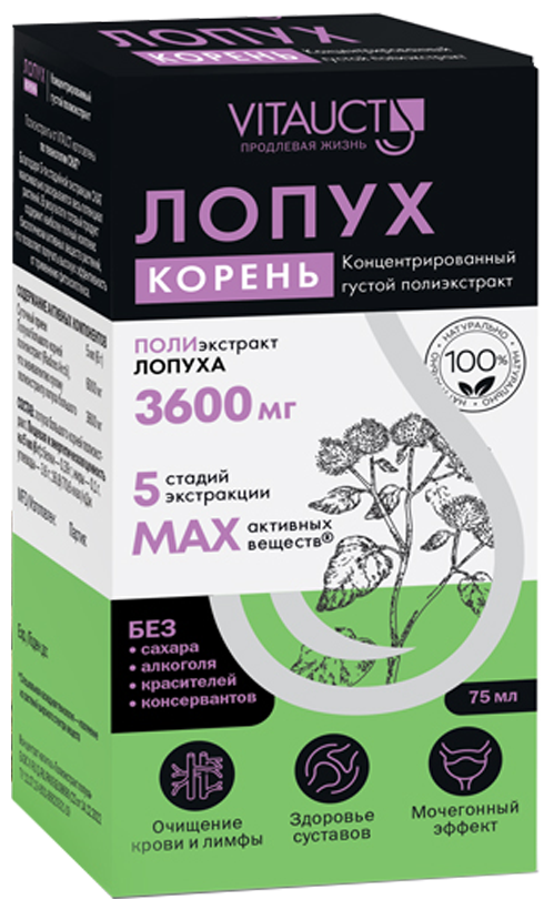 Экстракт корня лопуха - богатый источник аминокислот, полисахаридов, инулина, жирных кислот, дубильных веществ, фитостеринов, макро- и микроэлементов. Корень лопуха обладает выраженным противовоспалительным действием, способствует восстановлению суставов и используется при различных нарушениях их функций.