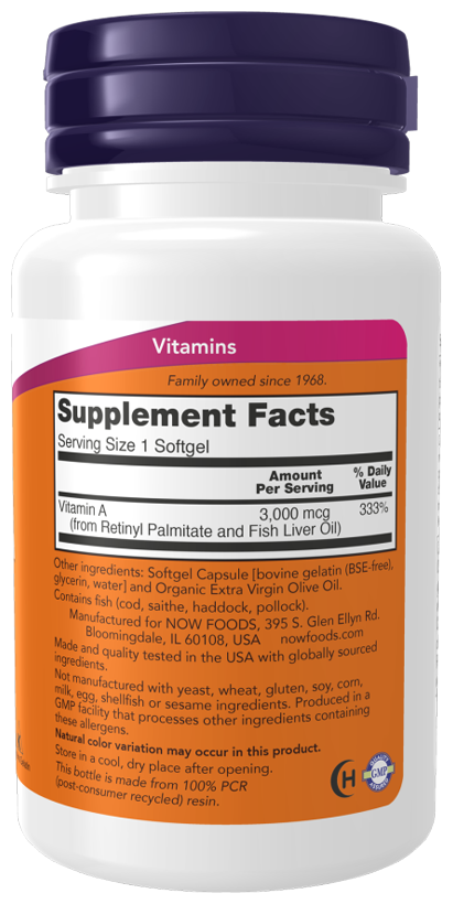 NOW Vitamin A 10000 IU, 100 капсул